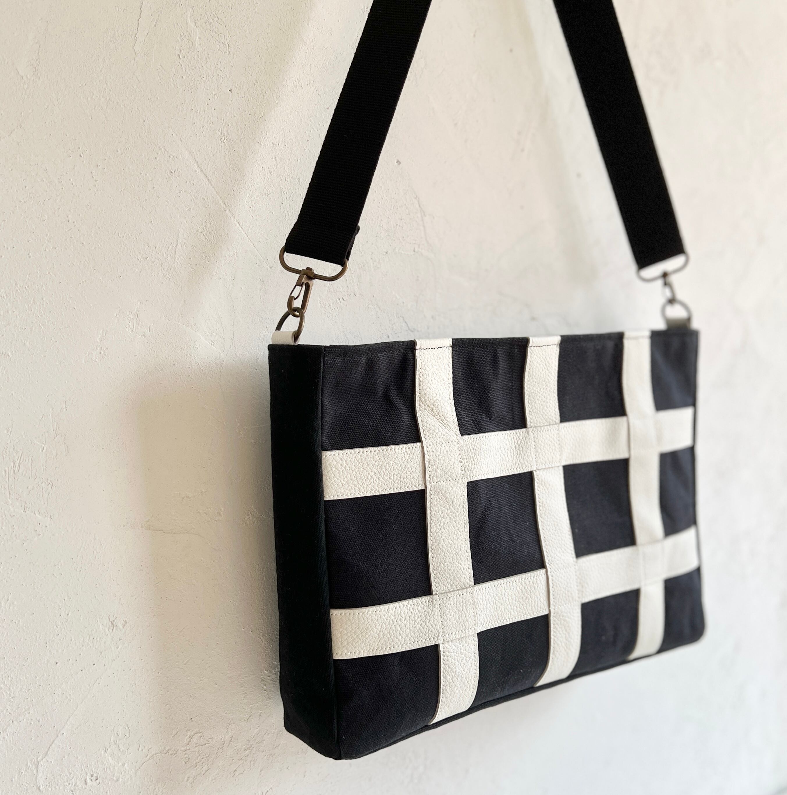 黒色帆布×白色本革